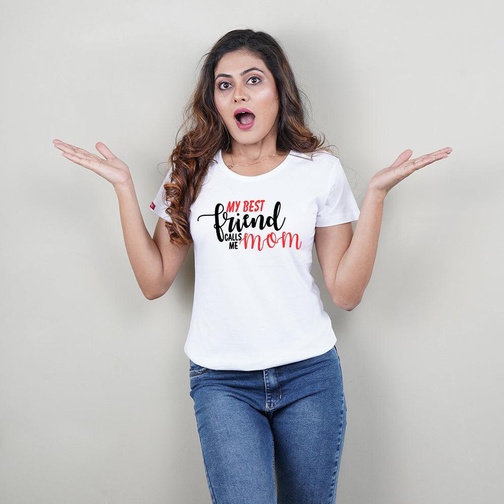 My Best Friend Calls me Mom-Best Friend, Mom-Son T-shirts Combo (White)