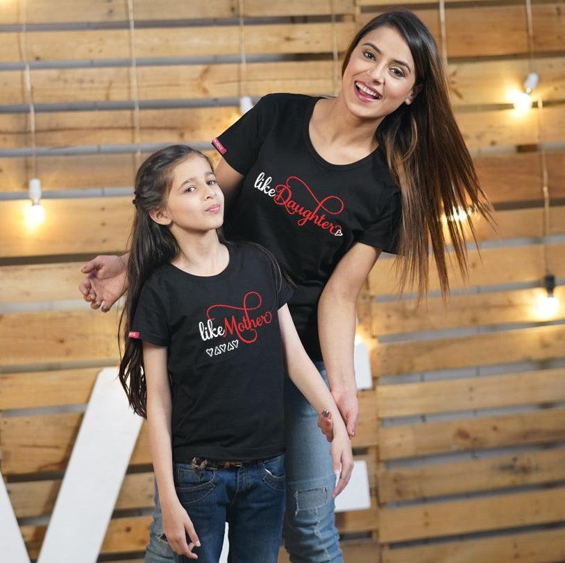 Show off your special bond with our "Like Mother-Like Daughter" T-Shirts Combo in classic black.
